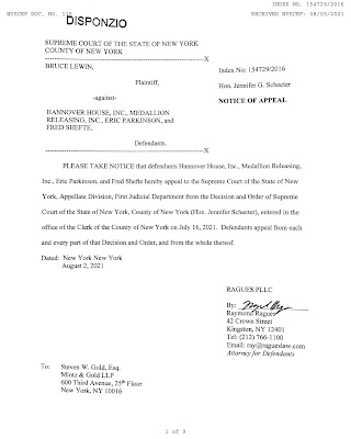 This leaves only two problematic cases to resolve, re-open or dismiss: the bizarre UPTONE judgment (which occurred AFTER a fully performed settlement agreement was in place) and the DAISY WINTERS judgment - which ALSO occurred after HHSE fully satisfied the licensor's terms for a non-litigious dissolution. Los Angeles based counsel for HHSE on these two cases feels that the motions to set-aside the UPTONE matter will be filed today or tomorrow... and that the DAISY WINTERS motions will be filed next week.